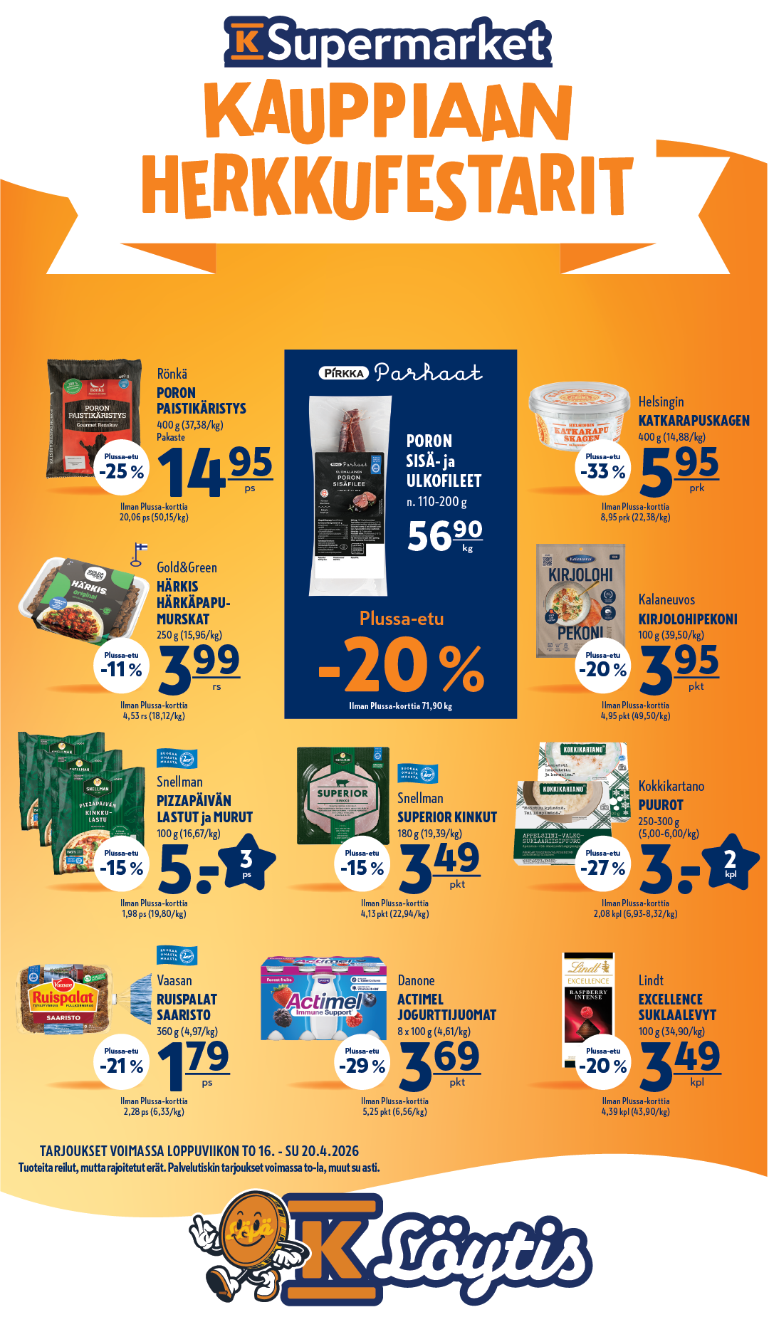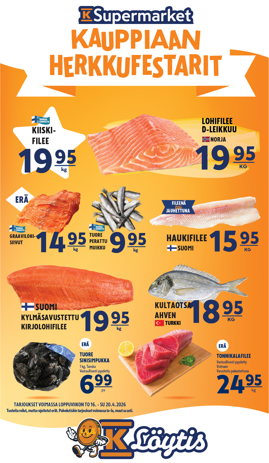 Löytis avoinna:Avoinna: ma-la 7-22, su 9-22Sushi ja Wok ma-la 10.30-19 Herkkutori palvelee: ma-to 8-19, pe 8-20, la 9-18 Kyyninkatu 22, Nokia 010 420 2700